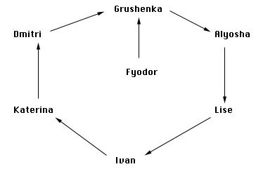 Part three attacks two greater themes. First, the death of Father Zossima in part II attains post-mortem significance as the body begins to putrefy almost immediately after death. This of course creates a great stir and the monastery and religious society find themselves divided among those who were for and against the father in life. For Alyosha, the death and rapid putrefaction have, of course, a very deep significance -- the effect of all this being a crisis of faith for Alyosha. The boy goes on to accept sausage and vodka from Grushenka in a contradiction to lent. Grushenka and Alyosha spend some time together and slowly develop a close relationship. Meanwhile, the second grand theme of part three is the announcement of Fyodor's murder and the subsequent arrest of Dmitri (who we know killed Grigory but know nothing as to his involvement with the murder of his father). Dmitri is hauled off to prison where instead of maintaining his innocence he decides that he is somewhat guilty of his fathers murder. Although they do not bear direct responsibility, the interesting idea is that Dmitri, Grushenka and later Ivan will all feel a portion of guilt and suffering over the death of Fyodor. The interesting part about book III is its illustration of Father Zossima's mark on humanity even in passing. Everyone around seems not only to understand but to embrace the late elders philosophies. Dmitri who is stuck in jail feels responsible for the actions of other humans. Grushenka feels guilty for having tampered with the relationship between Old Karamazov and Dmitri. Alyosha understands that his faith should not have to rest on the miracle that Zossima should be preserved for longer than he was -- in short, that faith should not necessitate miracles. Finally, even Lise feels that she must suffer and repent as she slams her fingers in the door. All come to believe that suffering is the only road to purity.