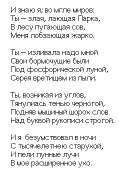 And we rave mindlessly in the night A version of Bely's own poem "Karma" (July, 1917) from Zvezdy (1922/reprinted 1966) , p.360, where it reads: