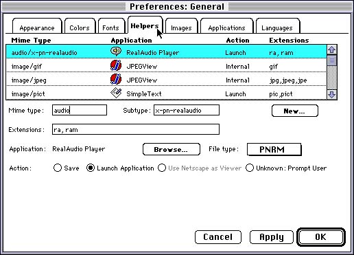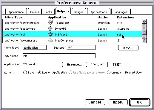 - Configuration of Netscape to handle Microsoft Word downloads consists