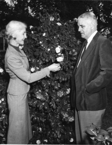 | Betty & Clement Moss with camellias |