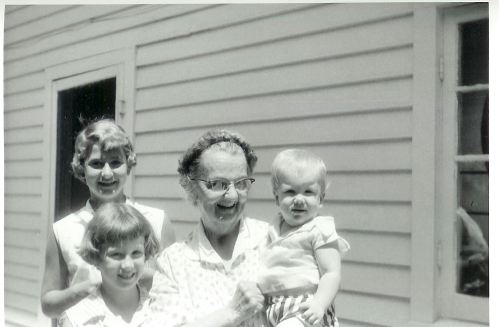 Mummie with Lyndel Gouaux, Melinda Moss, and Kevin Moss, about 1957