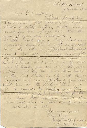 Letter to Theo from Martha Robinson (?) after Jeffie's death.