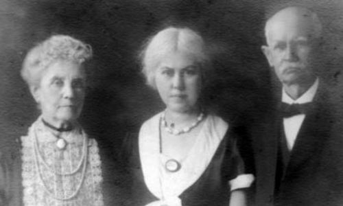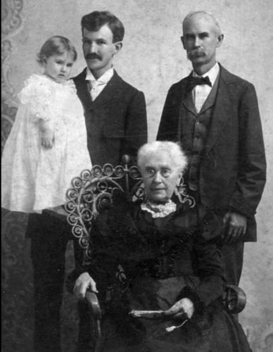 Elmira sitting, with Herman W. standing with Marian and George Taylor Rock
