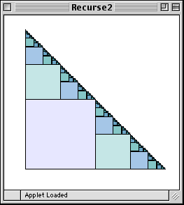 We made it look nicer by drawing the first square in a color created by new Color(225,225,255). At each level of recursion, the color of the first two components (the red and green components) are decreased by 30. That results in nice shading.